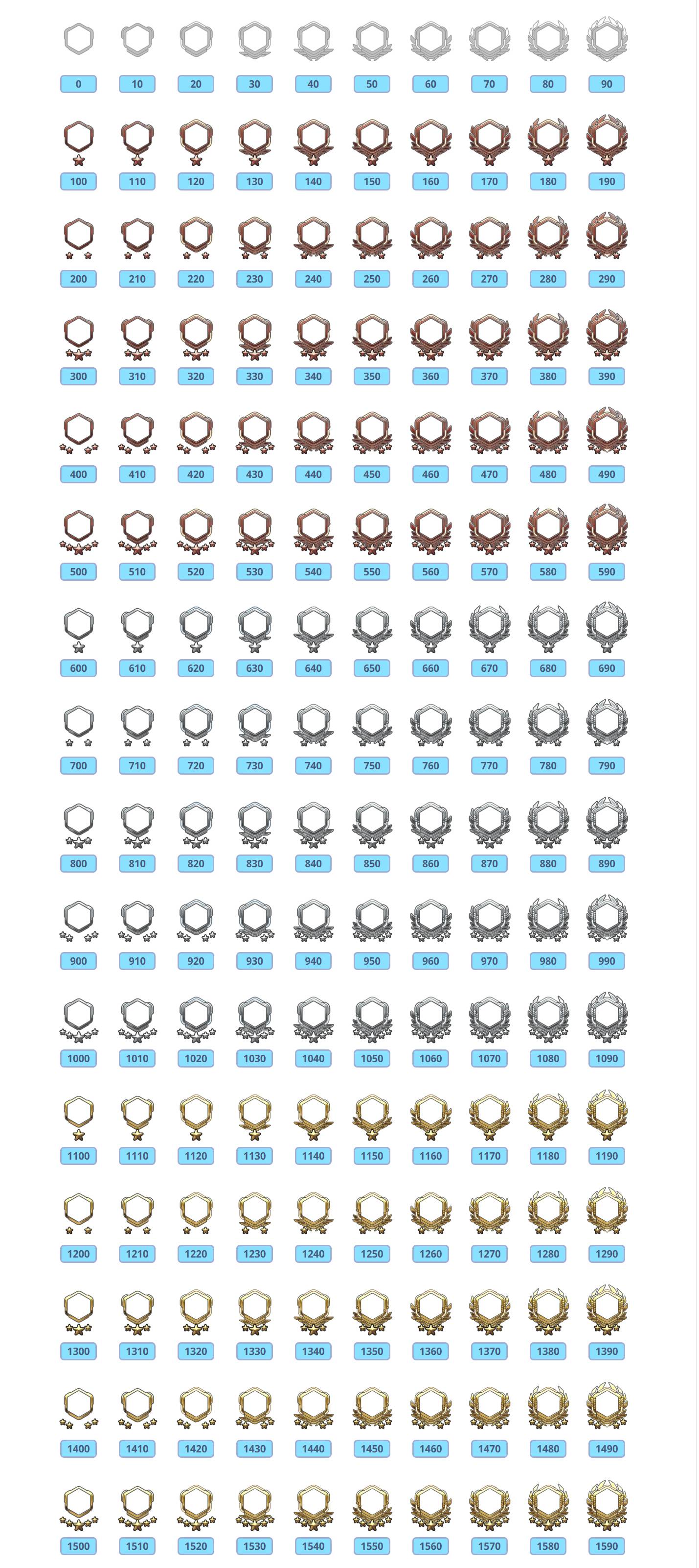 Zvijezdice počnu od 100 na dalje a ne od 200. I ovaj prvi red s srebrnim portretima ne postoji. |