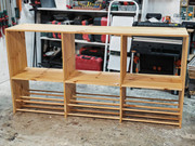 https://i.postimg.cc/mtpYc6MN/IMG-20250926-163218.jpg Još malo pa gotov regal za hodnik, ovo je stražnja strana, s prednje se ne vidi kraj kanala od ladica. https://i.postimg.cc/NyBjQQM7/IMG-20250926-205954.jpg https://i.postimg.cc/hX9GFXS3/IMG-20250926-210033.jpg Napravio ga od lijepljenih ploča bora i okruglih 19mm bor letvica iz Bauhausa. U gornji dio nakon što lakiram (sad čekam da se firnis osuši) idu Ikea Hjalpa 60x40 košare a ispod bi trebalo ostati dovljno prostora za knjige. Dolje idu papuče i patike. Materijal ispao cca 150e za dimenzije cca 180x90cm (jedna od nogu je spojena od ostataka 3x 120cm ploča) tako da je bilo minimalno otpada. Možda se vidi jer nisam još zatvarao rupe, ovo sam spajao koristeći Vevor pocket hole jig, fora stvar. Jednostavno za koristiti i daje dosta dobre rezultate. Puno brže i jednostavnije od drvenih tipli i praktičnije od keksa jer se može složiti i rastaviti po potrebi. |