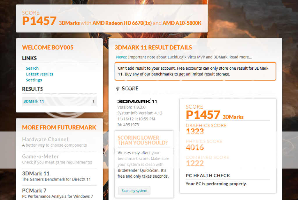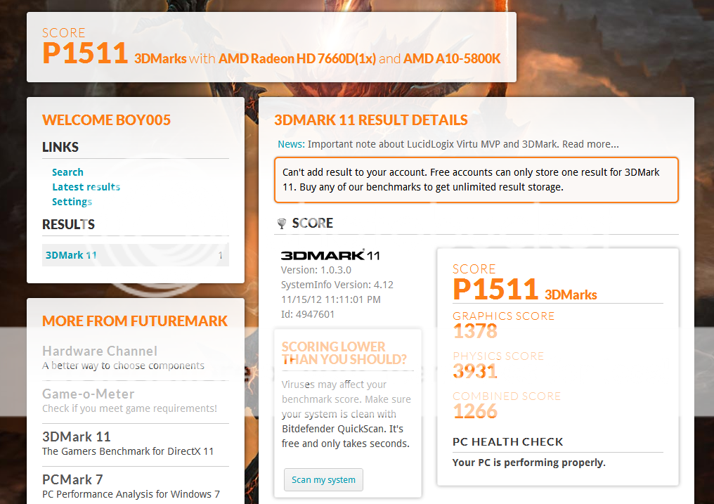 A10 5800K (stock) - 2x4GB KingstonX 1600MHz 1. 3dMark11 * HD 7660D (800Mhz) stock * HD6670 GDDR3 2GB/128bit (800MHz) * cross 7660D + 6670 2. BATTLEFIELD 3 (SP) 7660D + 6670 (cross) 1. Low settings * 1920x1080 (16:9) FPS: Min: 17 Max: 29 AVG: 21.54 2. Auto settings * 1920x1080 (16:9) FPS: Min: 17 Max: 27 AVG: 20.98 3. Ultra settings * 1092x1080 (16:9) FPS: Min: 6 Max: 13 AVG: 9.1 3. FARMING SIMULATOR 2013 7660D + 6670 (cross) * 1920x1080 (16:9) * Very High * AA: 2x * AF: 2x FPS: Min: 26 Max:53 AVG:43.3 ********************** 7660D * Very High * AA: 2x * AF: 2x FPS: Min: 15 Max: 54 AVG: 38.22 Nisu neki testovi, ali daju u uvid snagu APU-a, jer dok sam ga imao, cak sam se i naigrao na njemu :D Sto se tice snage proca, imao sam test sa gtx560ti u Dirt3 benchu di je davao 60fps na kraju testa, dok je i5-2500k (stock) davao blizu 90fps-a i nisam mogao vjerovati da je takva razlika, ali eto otom potom. :chears: |