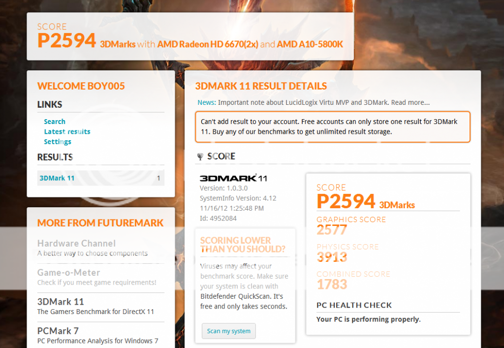 AMD A8-3820 @ 2.5Ghz AMD Radeon HD 6550D