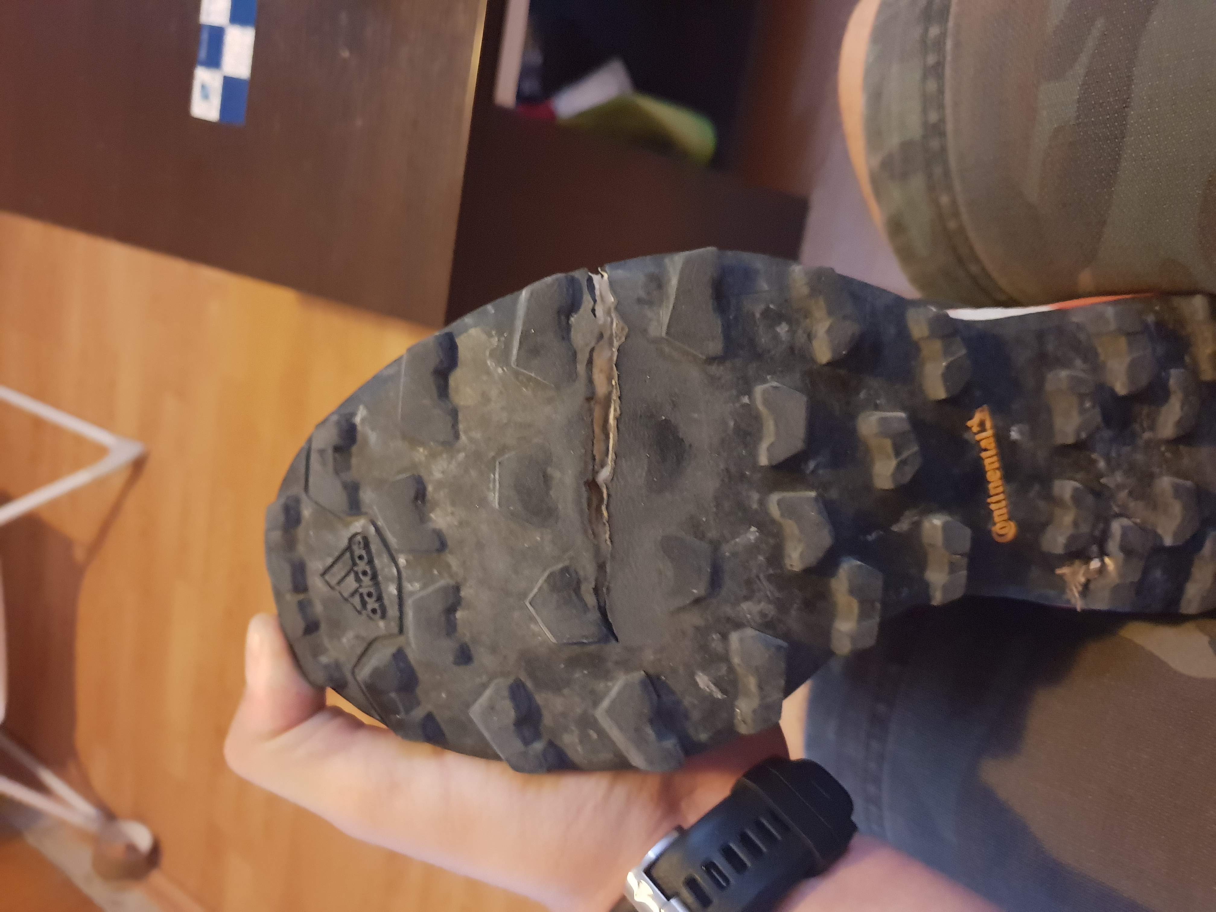 Adidas terrex skychaser gtx mi je đon pukao na pola nakon niti 7 mjeseci nošenja a platio ih 1k kuna. Nisam imao ni pravo na reklamaciju. Otišao kod postolara i on mi zalijepio novi đon za 200 kuna i od tad ih nosim još... Nikad više