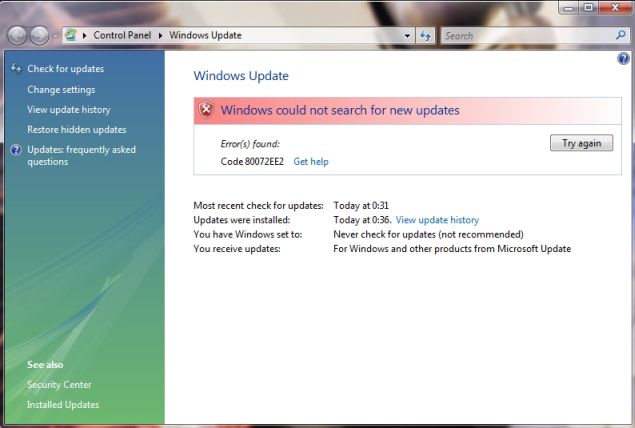 Eto, nakon prekjučerašnjeg uspješnog updateanja, jučer opet ne radi....stisnem "check for updates" i evo što mi izbaci: