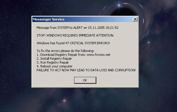 Najprije sto se tice tog popupa to ti je messenger servis a o tome imas: http://forum.pcekspert.com/showthrea...threadid=23399 Ukloni: R1 - HKLM\Software\Microsoft\Internet Explorer\Main,Default_Page_URL = about :blank R1 - HKLM\Software\Microsoft\Internet Explorer\Main,Default_Search_URL = res://C:\WINDOWS\ulfcj.dll/sp.html#28129 R1 - HKLM\Software\Microsoft\Internet Explorer\Main,Search Bar = res://C:\WINDOWS\ulfcj.dll/sp.html#28129 R0 - HKLM\Software\Microsoft\Internet Explorer\Search,SearchAssistant = res://C:\WINDOWS\ulfcj.dll/sp.html#28129 R3 - Default URLSearchHook is missing O2 - BHO: (no name) - {9EFC589A-2E20-FB8E-64E2-26266C42A5C4} - C:\WINDOWS\appje32.dll (file missing) O4 - HKLM\..\Run: [6A.tmp] C:\DOCUME~1\Bobo\LOCALS~1\Temp\6A.tmp.exe 0 28129 O15 - Trusted Zone: *.frame.crazywinnings.com O15 - Trusted Zone: *.awmdabest.com (HKLM) O15 - Trusted Zone: *.frame.crazywinnings.com (HKLM) O15 - Trusted IP range: 206.161.125.149