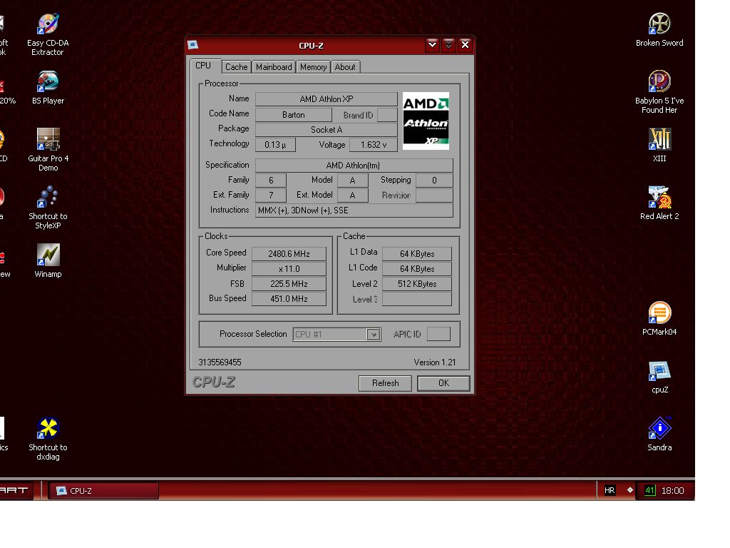Sto se tice napona, stavio sam mu u bios-u 1.5V, al mjerac pokazuje 1.45V, tak da neznam kome vjerovat... Prime je stabilan, al temp je oko 51-52C@1700RPM nakon 4h! E al to sam mjerio dok proc nije bio clock-an i napon je bio na 1.65V! Javim ujutro stanje, neka vrti cijelu noc prime! Sad su postavke 2500+ 1833 @ 3200+ 2200@1.50V(bios mjeri 1.45, NV Utility mjeri 1.50V).Stetno za proc nije, samo nece raditi kak spada. Kad stavim na 1.45V, komp mi se nekad upali, nekad ne! Kak mu dode, al radi stabilno, bar sto se igrica i sl. stvari tice!