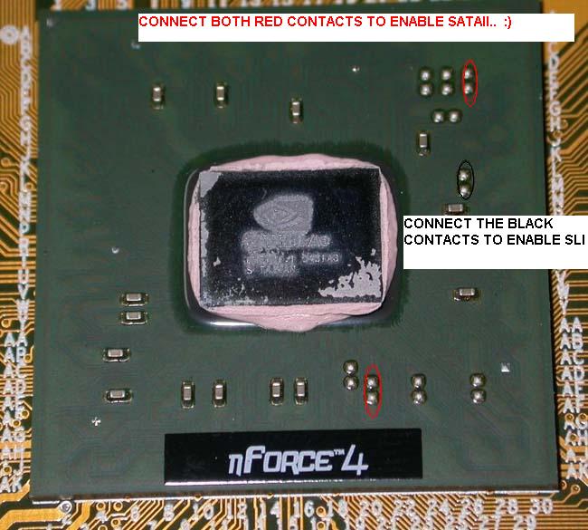 Ne,da bi pretvorio ploču u SLI moraš povezat dva tranzistorića na nForce4 Ultra chipsetu (makneš hladnjak prvo ).ATi ima svoju verziju SLI-a i zove se Crossfire,i pogađaš,u nj možeš povezati samo Radeon kartice,a u SLI možeš povezati samo GeForce6 (6600GT,6800,6800GT,6800Ultra) |