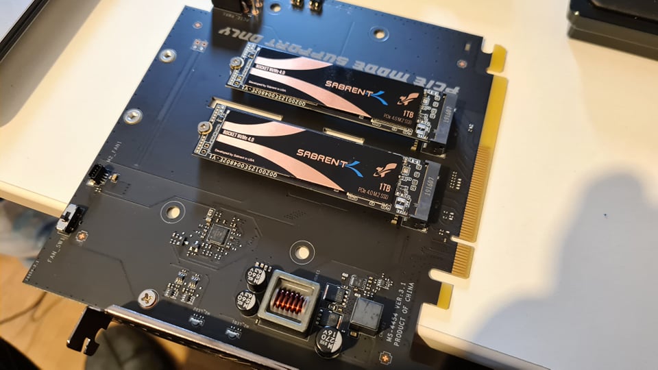 Trebalo bi vidjeti ima li LSI kakav m.2 RAID kontroler. Ovo je koliko vidim samo fizički adapter sa PCIe 8x slota na m.2 slotove, bez kontrolera, a RAID-anje odrađuje ploča, što obično nije baš najsretnije rješenje. |