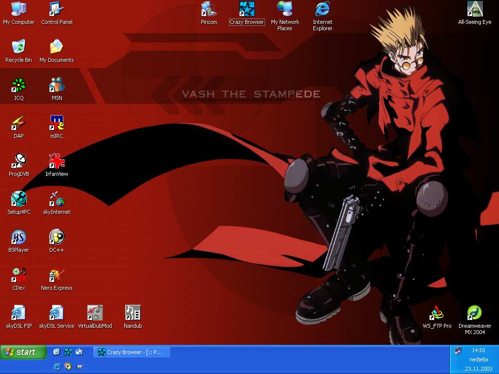 što se tiče tema, ne bih se složio za uxtheme jer mi je kompić nabrzaka složil exe koji to skopira i resetira stroj... i teme se odabiru normalno, a stylexp mi ne zauzima dragocjenu memoriju. nego super su vam deskovi, a za moje brdo ikona postoji razlog. mrzim ikone na desku. na poslu nemam nijednu, nego sam donedavno i doma i @work furo onak još jedan taskbar s lijeve strane (bez texta, male ikone, autohide) i u njemu sve to. ali doma mi to kolje kompjutor dok se diže, ali i u radu, tak da sam ih ovak stavil na desk. |