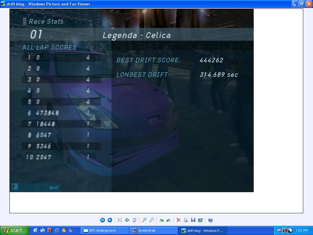 Evo vga killeru samo za tebe... 513,000 score 5 min i 51 sec drifta 6-i krug sve to na 6-oj stazi posto je najbolja.Stvarno steta sto nema replay P.S. ko zna da sam nest uzeo kolki bi rez bio ![]()