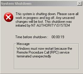 trojan ili crv nisam jos siguran nesto 32. antivirus + firewall + sp inace kada ti javi stisni start>run i utipkaj shutdown -a to ce ti pomoci