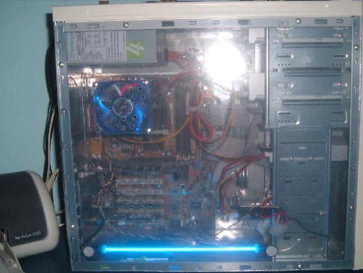 ma tomi je sam tak za probu. Kasnije ču malo to estetizirati. Sve kablove ču staviti u plavo . Još ču dodati 2 coolera. Još jednu neonku. Skinut ču prednju stranicu i tam ču još dodati dva coolera. Kupit ču potenciometar za regulaciju brzine cooliča, bit če i grilova.. Samo kad? Rubove ču pokriti sa plavom izolir trakom.. I kučište ču cijelo ofarbati sa plavim sprejom. |