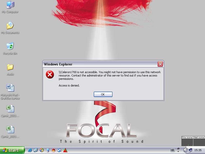 I na drugom stroju je win xp , i kada bilo što sheram pojavljuje mi se ta poruka.Mrežne postavke nisam dirao ,znaci kako su podešene po defaultu,ali mi je jasno da neke postavke na Celeronu1700 nisu dobre,ali me zanima koje to.