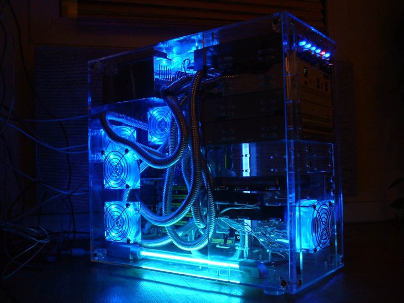 Dam ti ja svoje AQUA full plexi kučište (plave boja plexija) sa rubovima zlatne boje, vrhunske završne obrade. Jedina mana što ima pun kurac kila, pa umrem dok ga nosim na LAN party, al zato svi uzdišu kad ga vide..hehe...par ledica...UV ploča...UV lampa...UV kabeli...CPU hladnjak sa plavim ledicama....ima još toga. Cijena 1000 Kn (dobiš još 2 case coolera plava Silent blade 80mm).