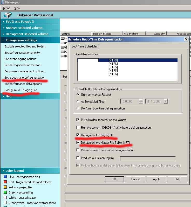 ... u diskeeper 9.0 Pro verziji odeš pod Change your settings i voila, tamo je ... preporučio bi ti da onda tamo i odeš na dnu u toj rubrici i konfigriraš MFT/Page file također ... sada za "po Doma" verziji ili ti home kako je riješena ne vem ... u O&O je malo kompliciranije treba ići u schedule pa napraviti task koji će se desiti za 1 - 2 minute ako nisi mazohsta pa ćeš staviti za sat - dva pa onda među ostalim uključiti i boot defrag ...