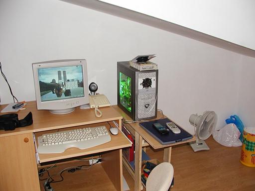 ja bi na tvom mjestu zaboravio i ovaj dio za kompjuter jer ce mu bit daske s obe strane (neces moc uvlacit zrak sa strane, a ni od nazad ako stol bude uz zid) kod jednog prijatelja koji ima nesto slicno duron na 800mhz liti radi na 50-ak stupnjeva, a meni je taj isti proc s istim kulerom liti radija na 43-44 stupnja radje napravi nekakav stolic na kom ce kompjuter stat kraj stola tako ces lakse koristiti i cd-rom, floppy, ladicu za disk i slicne finte