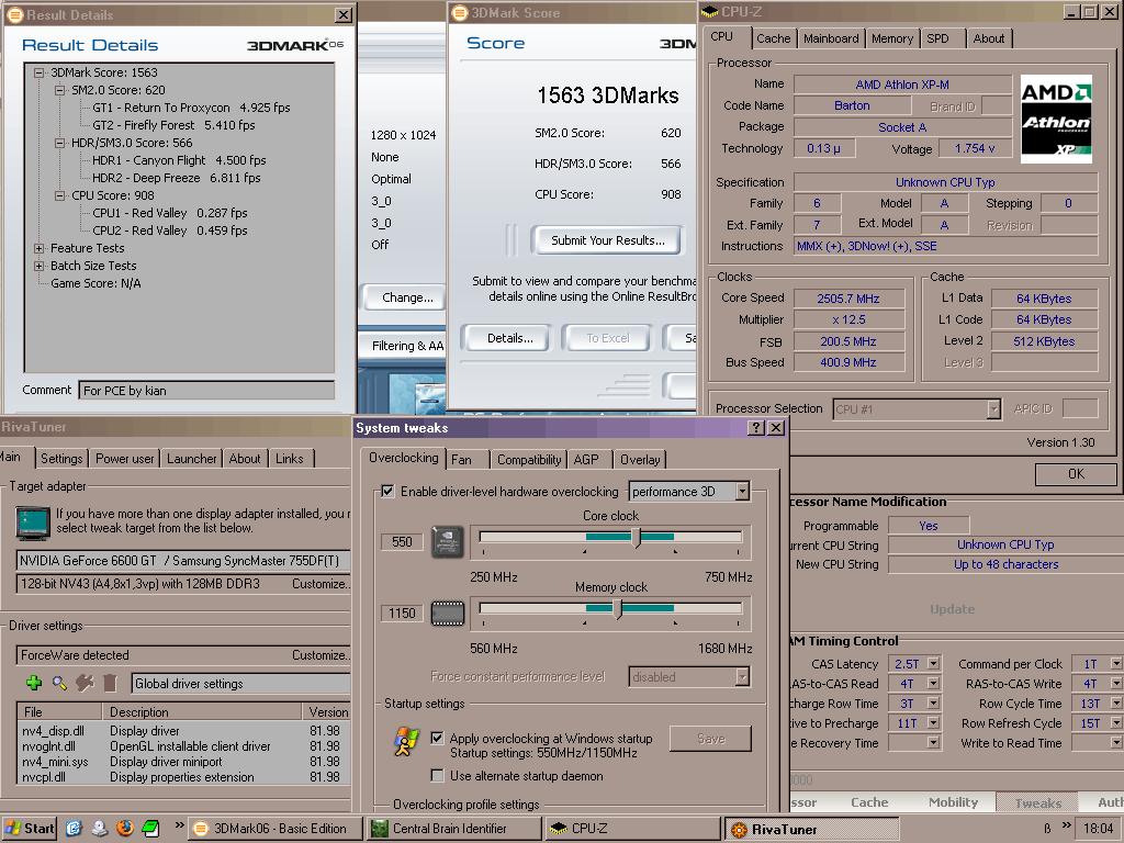Evo da dodamo i 8800GT 15455 - Q6600@3.4GHz, BFG 8800GT@774/1994/1026 (GPU, Shader, Memory) http://img413.imageshack.us/img413/8735/06no1.jpg (budući da su na procu i grafičkoj stock cooleri, hlađenje je bilo mrvicu ekstremno i služilo je samo za test "dokle ide" grafa - stavio sam kantu na balkon na oko -1 stupanj) Na nešto većim frekvencijama su se počeli javljat sitni artifakti. Rezultat bi mogo bit još veći da sam dizao i proc "dokle ide". |