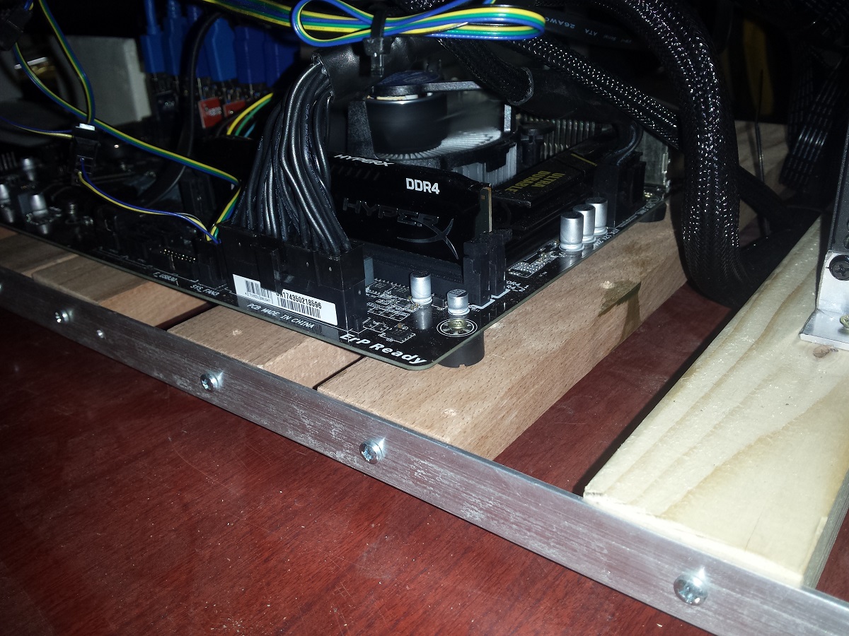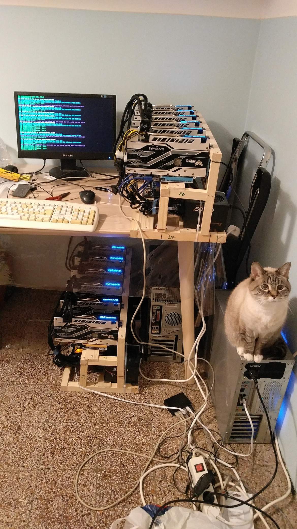 Hajde da sudjelujem sa svojim rigovima... Rig1: Matična ploča ASRock H81 Pro BTC, s1150, ATX Procesor Intel Pentium G3260 (Dual Core, 3.3 GHz, 3 MB, LGA 1150) box Grafička kartica AMD Sapphire Radeon RX 580 Nitro+, 4GB GDDR5, Lite 3x Grafička kartica AMD Gigabyte Radeon RX 580 Gaming, 4GB GDDR5 3x Napajanje 1200W Corsair HX1200, HX Series, Fully Modular, 80+ Platinum, CP-9020140-EU Memorija G.Skill 4 GB DDR3 1600MHz, F3-1600C11S-4GNS Potrošnja struje = ~650W Gigabyte RX580 Modani Biosi Core Clock : 1150 Memory Clock 2100 Voltage: 0.85 Electroneum Hash rates: 880 878 879 Sapphire RX580 Modani Biosi Core Clock : 1200 Memory Clock 2050 Voltage: 0.9 Electroneum Hash rates: 896 897 896 Rig2: Matična ploča ASRock H81 Pro BTC, s1150, ATX Procesor Intel Celeron G1840 (Dual Core, 2.8 GHz, 2 MB, LGA 1150) box Grafička kartica AMD Sapphire Radeon RX 580 Nitro+, 4GB GDDR5, Lite 6x Napajanje 1200W Corsair Professional Platinum Series HX1200i Memorija Kingston 4 GB DDR3 1600MHz, KVR16N11S8/4 Potrošnja struje = ~650W Sapphire RX580 Modani Biosi Core Clock : 1200 Memory Clock 2050 Voltage: 0.9 Electroneum Hash rates: 915 913 915 915 915 912 Rig3: Procesor Intel Celeron G3930 (Dual Core, 2.9 GHz, 2 MB, LGA 1151) Matična ploča Gigabyte GA-H110-D3A Mining Ready, s1151 Procesor Intel Celeron G1840 (Dual Core, 2.8 GHz, 2 MB, LGA 1150) box Grafička kartica AMD Sapphire Radeon RX 580 Pulse OC Lite, 4GB 6x Napajanje 1200W Corsair Professional Platinum Series HX1200i Memorija Crucial 4 GB DDR4 2400MHz, CT4G4DFS824A Potrošnja struje = ~650W Sapphire RX580 Modani Biosi Core Clock : 1180 Memory Clock 2020 Voltage: 0.9 Electroneum Hash rates: 898 896 892 898 893 892 Svi rigovi na ETH imaju hash rate oko 30-31 MH/s po kartici, i vuku oko 800-900W po rigu. Frame je očigledno od drveta, ručni rad, letvice kupljene u Pevecu. Od dodatne opreme tu je Uticnica mFi MPower za nadzor potrošnje. |