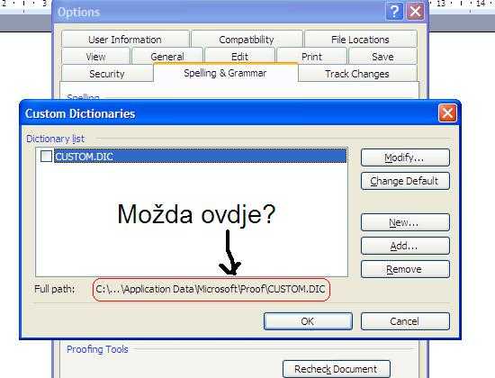 moras kupit lokalizirani office da bi ima hr rijecnik btw zna li neko u kojoj se datoteci nalazi rijecnik ja sam nasa samo datoteku s novododanim rijecima microsoftov rijecnik nigdi ne mogu nac a tija bi neke rici izbacit iz njega