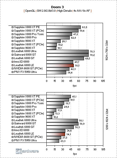 Evo, imam jedno kratko pitanje. Za dan-dva planiram uzet 6800LE, al sad čitam tam negdje na forumu da je ta kartica lošija od 9800pro??? Jel to istina ili kaj...?Ta tema je zatvorena pa tam nisam mogo ništ pitat, pa sam, eto, ovdje to stavio.... Gledam testove po Internetu i iz njih se vidi da 6800 rastura i XT verziju 9800, a kamoli pro... Ajd sad da čujem... Evo i jedan primjer |
