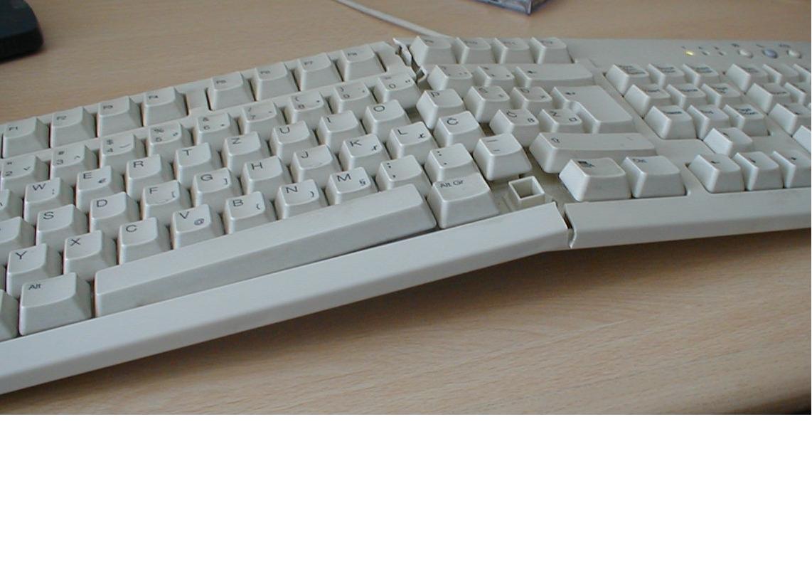 Ja sam svojoj tridesetkunskoj tipkovnici svašta radio,pa je sad invalid.Slovo C se teško stišće,SPACE je iskrivljen,E i F sam krivo stavio nakon jednog čupanja tipaka.Najviše v je volim uzet kao letvu i mlatit s njom o stol.:burn:
