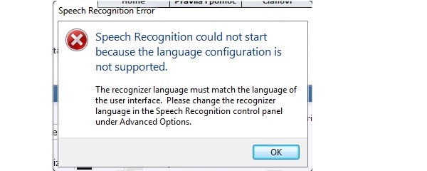 Ovako, imam windows 7 ultimate (x86) na kojoj kao sto svi znate postoji aplikacija navedena u naslovu teme. Nakon sto pokrenem speech recognition i odradim osnove, tutorial i kad bi se aplikacija trebala upalitiizbaci mi se error: speech recognition could not start because the language configuration is not supported... procesljao sam internet uzduz i poprijeko i nisam nasao rjesenja koje radi kod mene..kod drugih rade neka rjesenja kao sto su ciscenje racunala sa ccleanerom, pa restart, pa odabiranje postavki jezika sve na engleski (sto je meni bilo po default-u) i ponovan restart.. kod mene to rjesenje ne radi..zato sam se obratio vama, ima li itko od vas iskustva s tim ili ideju kako rijesiti problem? u prilogu je i slika errora.. samo da napomenem, imao sam i vistu ultimate i tamo je sve radilo bez problema, i na 32 i na 64 bitnoj verziji.. |
