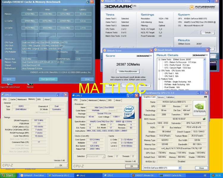 Servus, obadva SS su ponovo postavljena, morao sam ih malo komprimirati radi velicine. CPU je E8600@5312MHz; FSB@625MHz; RAM Cell Shock 1800 @ 1874MHz CLK 8-7-7-18-1T. Ostatak mozes vidjeti iz SS's. Pozdrav @Razer LN2 - dobra izolacija sa Armaflexom, ventilatori koji sprecavaju kondenziranje vode i sve ce biti u redu. Vazno je da imas dobar Thermal Grease, ja koristim Arctic Silver Ceramique za LN2. Unatoc -190 ostaje dovoljno elasticna da se dispenzer moze bez problema demontirat. Javi se sa PM za razmjenu iskustava. Zadnje izmijenjeno od: Barisan. 05.07.2010. u 20:08. |