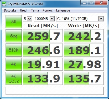 Evo 120-tka EVO 840 je u laptopu ali na sata2, laptop je stariji. Zasada sam vrlo zadovoljan, to sve leti naspram starog harda. Dolje je test... |