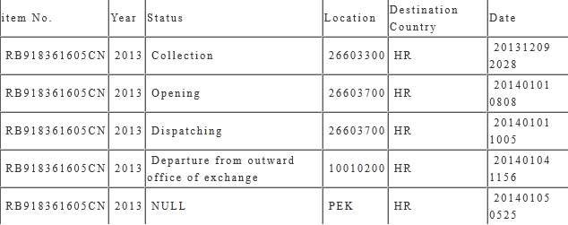 Ponisteno.Znaci doslo je u Peking i tamo je ponisteno.Predpostavljam da ti nece nikada doci.