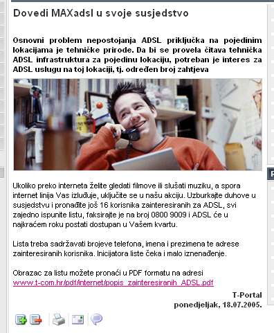 U opcim uvjetima stoji ovo, cititam: 3. instaliranje ADSL modema 3.1. HT ce izvrsiti instalaciju ADSL modema i druge potrebne opreme na lokaciji Kupca navedenog u Zahtjevu. u roku od 30. dana od dana prihvacanja Zahtjeva. Nikakvi tehnicki problemi nisu u pitanju, a i ne bi trebali biti. ta HT je hebeno velika tvrtka. |