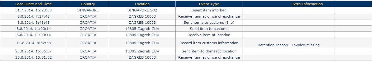 na singpostu preko trackinga status se promjenio u 19-08-2014 - Arrived at overseas (Country code: HR) znači da je stiglo u HR na carinu? |