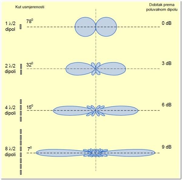 "drugo rješenje mi je uzeti neki malo bolji router sa više antena ili uzeti onaj kojem mogu zamijeniti antene na način da ih odšarafim." ..sa više antena nećeš ništa dobiti na dometu..pošto je u kući među zidovima ni antena usmjerena ne znači uvjek da će biti bolja ( vani na optičkim dometima je dosta bolja). Što se tiče TP link antene koju je montirao Lobo54 ni ona nije usmjerena i ako ima bolje pojačanje od tvoje orginalne to bi značilo da zrači niži kut, samim tim prema gore na 2. kat bi bilo i lošije...osim ako je polegneš u horizontalu a to možeš prije ikakve kupovine probati odmah. Valna dužina je oko 12 cm što znači da ova sa slike sa 9dB antena ima 8 polovina valne dužine tj. oko 50cm a razlika između dB i dBi je 3 dakle donja antena bi po tome imala 12 dBi teoretski ( u praksi se uparivanjem dva dipola ne dobije 3dB već manje) Zadnje izmijenjeno od: D/G. 14.09.2014. u 14:44. |