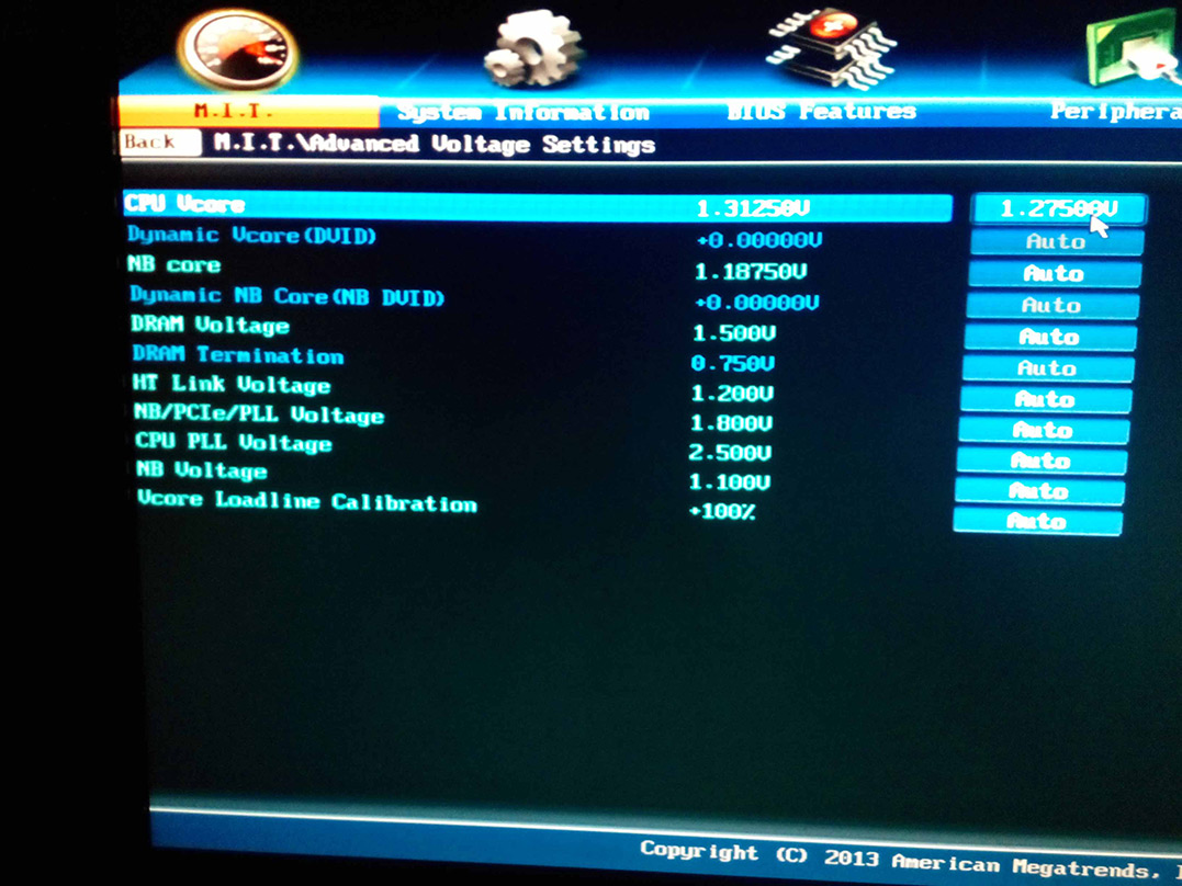Matična ima relativno velik Vdroop, probaj upaliti Load Line Calibration i stavi ga na "Enabled" ili tak nekaj slično. Nakon toga stavi Vcore na 1,25V pa onda probaj.