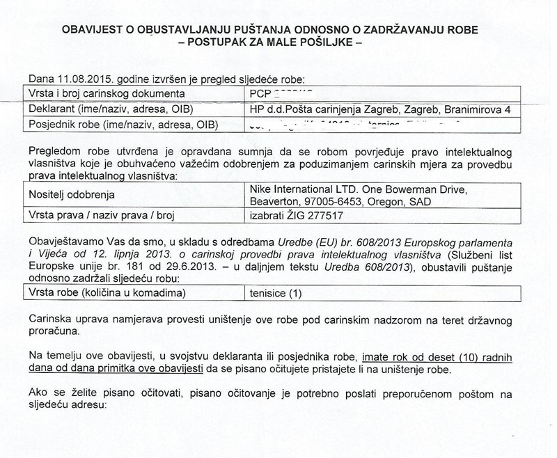1. traze racun zatim za mjesec dana dobijem ovo Nikad prije nista kupovao nikad imao posla sa carinom i eto ulovili su švercera s jednim tenisicama Ha BRAVO za carinu
