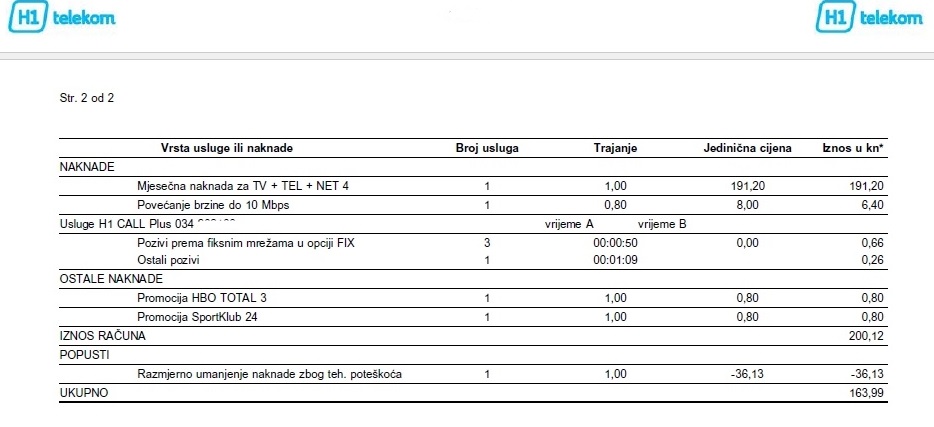 Da čujem vi koji ste na H1 preko HT žica da li i dalje dobivate račune od HT a? Ili samo od H1? Hvala! EDIT ! Učinio mi se manji račun ali sad vidim da je umanjen radi poteškoća usluge ![]() Ako je to to zasad sam prezadovoljan sa H1 usligom u odnosu na HT koji sam plaćao sa manje kanala i manjom brzinom 305kn ! Zadnje izmijenjeno od: Jole911. 07.10.2015. u 20:24. |