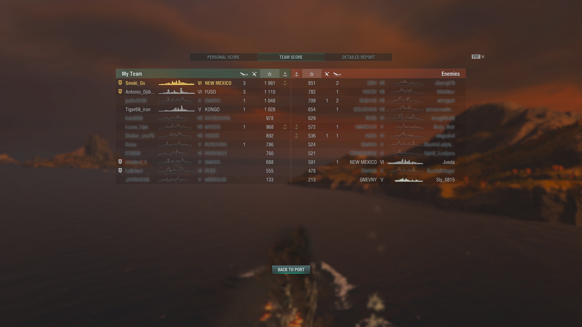 Kako sam jučer naletio na dobru partiju sa protivnicima koji imaju muda - takve borbe volim. Prvi bliski fajt je bio sa North Carolinom (BB vs. BB) usprkos tome što je znao da imam torpeda - respekt kapetanu, taj fajt sam dobio. Drugi bliski fajt je bio sa Iowom gdje mi je falila najvjerojatnije salva tog jednog turreta (koji mi je ranije uništio) jer je ostao na cca 7k HP-a i da sam pogodio zbliza još jednu citadelu, mislim da bi lik potonuo + tenkre zaboravio da mi je ranije DD uništio torpeda sa strane, tak jasno, koju sam okrenuo prema Iowa-i ![]()