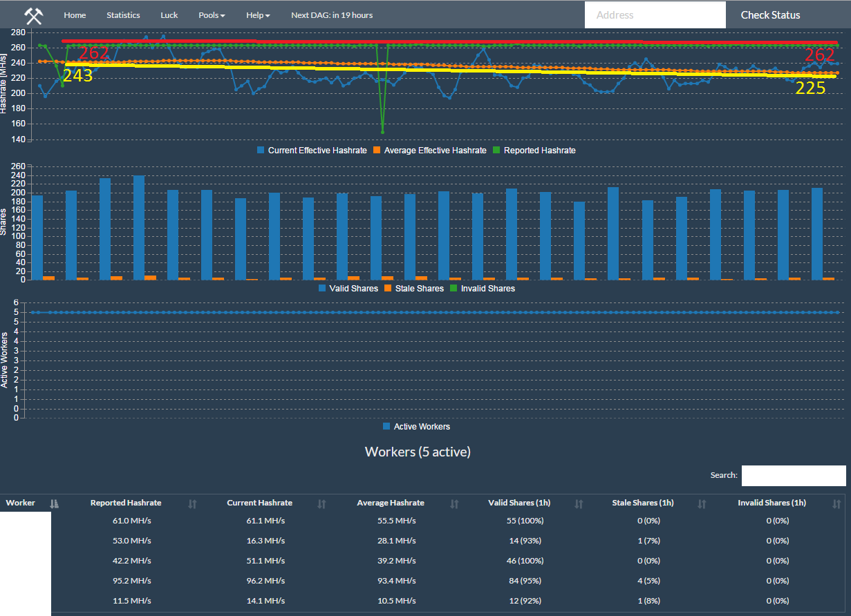 | Desila mi se jedna čudna stvar: Znači nešto je očito poremetilo vezu majnera i poola, i desio mi se jedan rejected share. Međutim,gledam sada na poolu i ispada da mi je rig blokirao. Ja se spojim team vieverom na njega, on uredno radi svoje, i spojen je na pool, ali ispada da pool ništa ne registrira ? Worker Calc Hashrate(MHs)Sent Hashrate(MHs)Last shareShares (last 60 minutes)Shares (current hour) 1. Rig1 125.73 107.60 17-06-13, 13:11:34 (34 minutes ago) 8537 Total0 (calc) Što napraviti ? Pustiti rig da radi ? Izgasiti ga ? Reset? edit, opet se spojio na pool i piše: Last share 17-06-13, 13:19:26 7-06-13, 13:19:26 (35 minutes ago) corrupted DAG Gledao sam u DAG files in Windows are here: C:\Users\___\AppData\Local\Ethash Ali uopće ne mogu naći folder Ethash. Pomoć  Zadnje izmijenjeno od: Colop. 13.06.2017. u 15:11. |