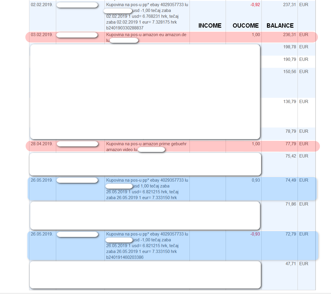 zaba amazon par slučaja- isto vraćeno nakon što sam podnio pisanu žalbu, doduše ne znam ni što amazon ima 3 puta autorizirati i provjeravati istu karticu koju koristim već neko vrijeme što se konverzija tiče to je korektno i transparentno prilikom plaćanja npr visom kunskog žiro računa- po trenu naplate naprave konverziju po aktualnom tečaju |