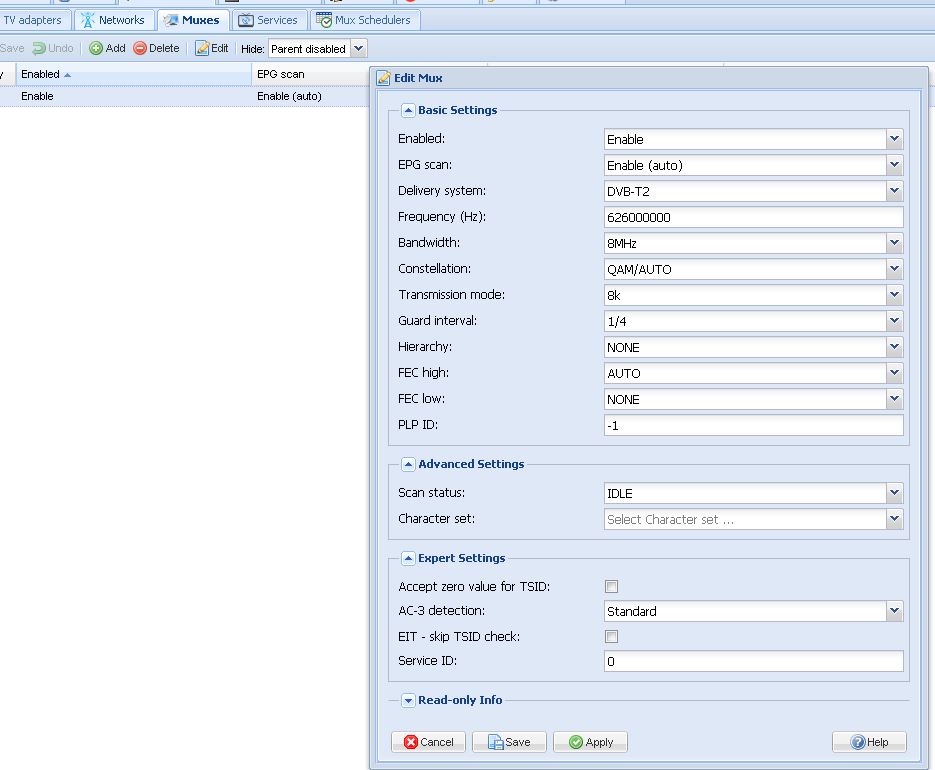 Kolega, tu na forumu, mi je ovako rekao: Treba pod "edit mux" promijeniti "delivery system" u dvb-t2, pa ponovo proskenirati mux. Ja se upravo mučim. Nisam još uspio. Kad bih bar znao resetirati sve. Nakupilo mi se tu svega. Evo slika: https://tvheadend.org/attachments/5758 Javi, ako riješiš. |
