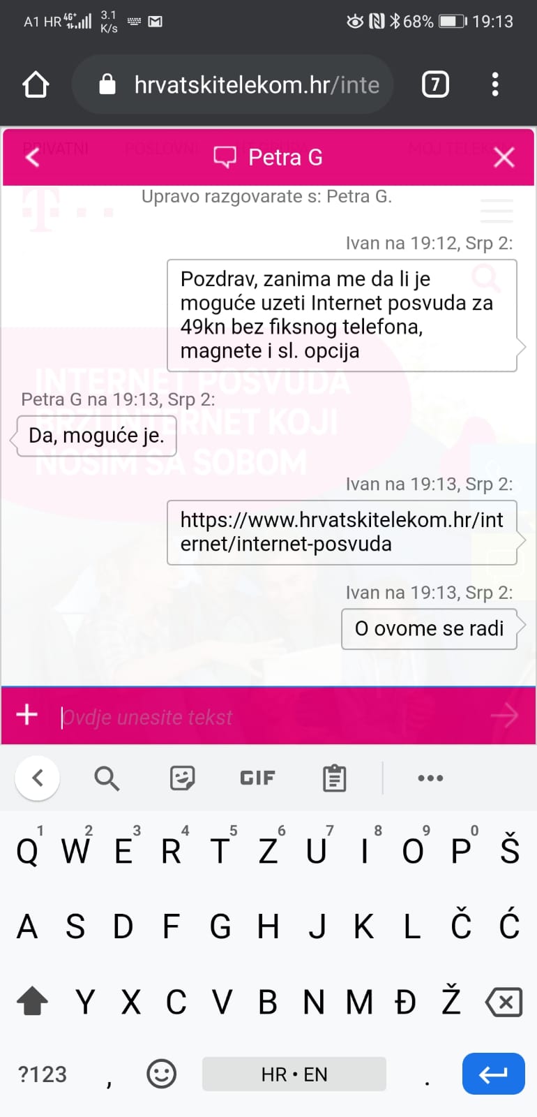 . Možeš uzeti za 49 kn karticu u iskonu sa 60 Gb prometa bez ugovorne obveze. Ja imam i nema nikakvih problema. Za iste pare u t-com centrima daju isto za 49 kn 60 Gb bez UO i nemoraš kod nijednih imati nijednu drugu uslugu. Usluga 49 kn 60 Gb u tcom se zove internet posvuda. . |