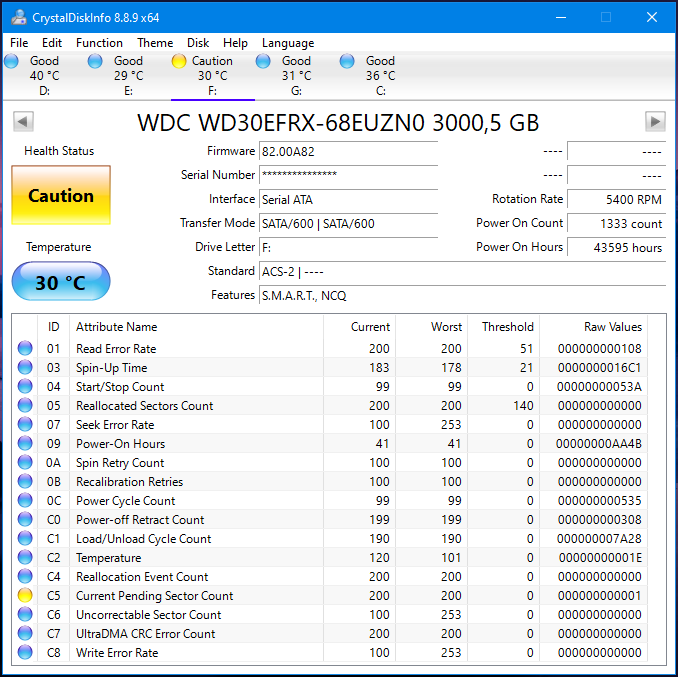 Možeš ga "slikat" kad smart jednom okine na jednom od kritičnih parametara, sreća pa nije interni sistemski, inače bi se os bunio ... Oba su jednako problematična, zabilježeno 60 stupnjeva, po meni je to previše ... E sad, hoće li ti uvažiti reklamaciju > zamjenu za nove, vrag zna. Ne zaboravi negdje drugo prebaciti podatke prije slanja. |