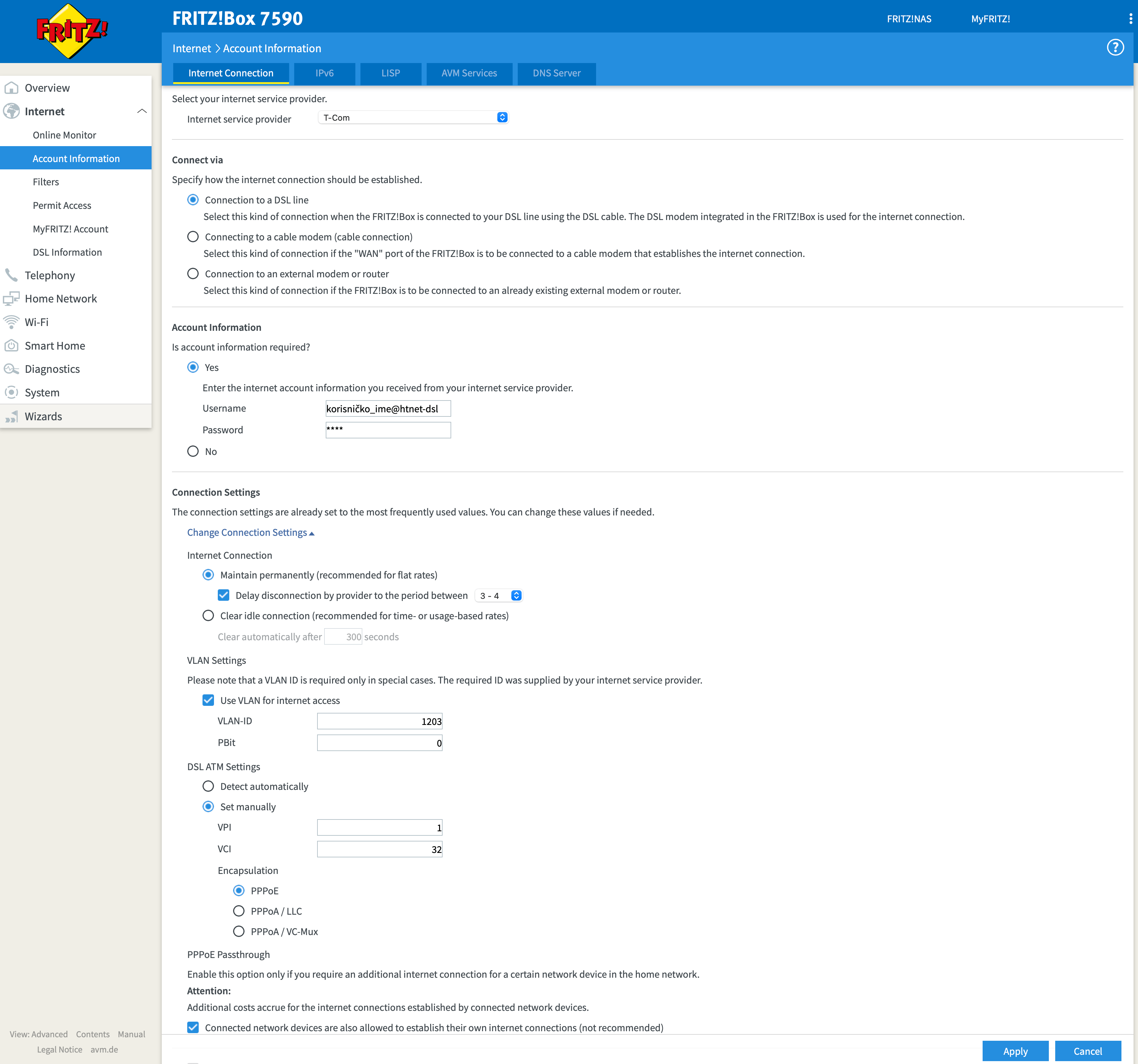 Uz pomoć kolege @mtigeli i konfiguracije koju nam je ustupio napokon imam FRITZ!Box 7590 (FRITZ!OS 7.25) na kojem uredno radi pristup internetu (VDSL) i iPTV (MAXTv). Ostalo ne koristim (VoiP). Pristup providera (Hrvatski Telekom) na uređaj mi trenutno nije potreban.
