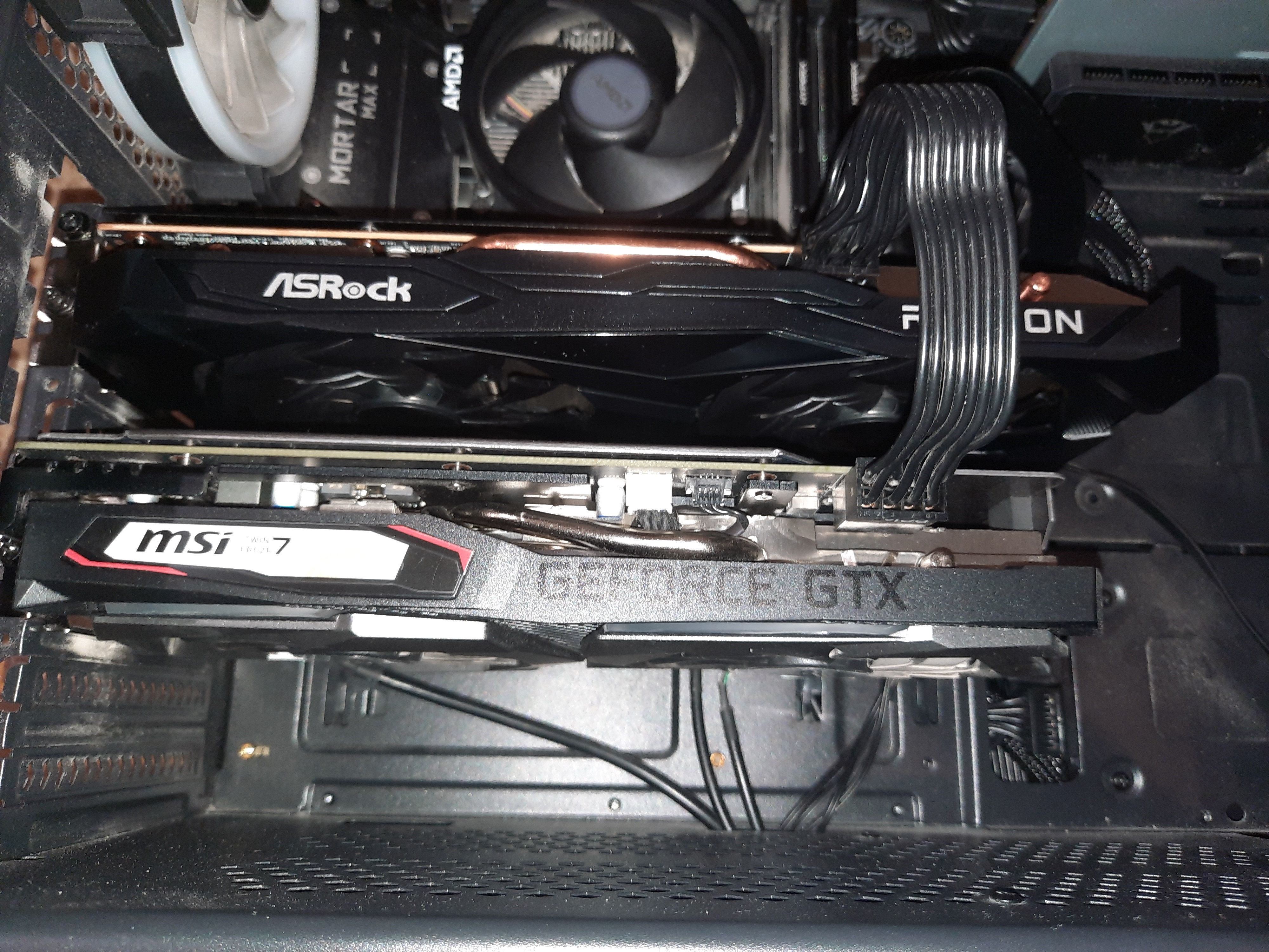 Evo da i ja postam slike Asrockice RX6600XT. Iako je PCB relativno malen, kartica s hladnjakom je dosta velika. Slikana je u Winston kućištu sa MSI GTX 1660 Super, a RTX 3070 Suprim sam nabacio za usporedbu veličine ![]() U Warzoneu RX6600XT odokativno daje 20-30% bolji framerate od 1660 Super (odokativno jer sam naravno napičio još detalja sa RX-icom). |