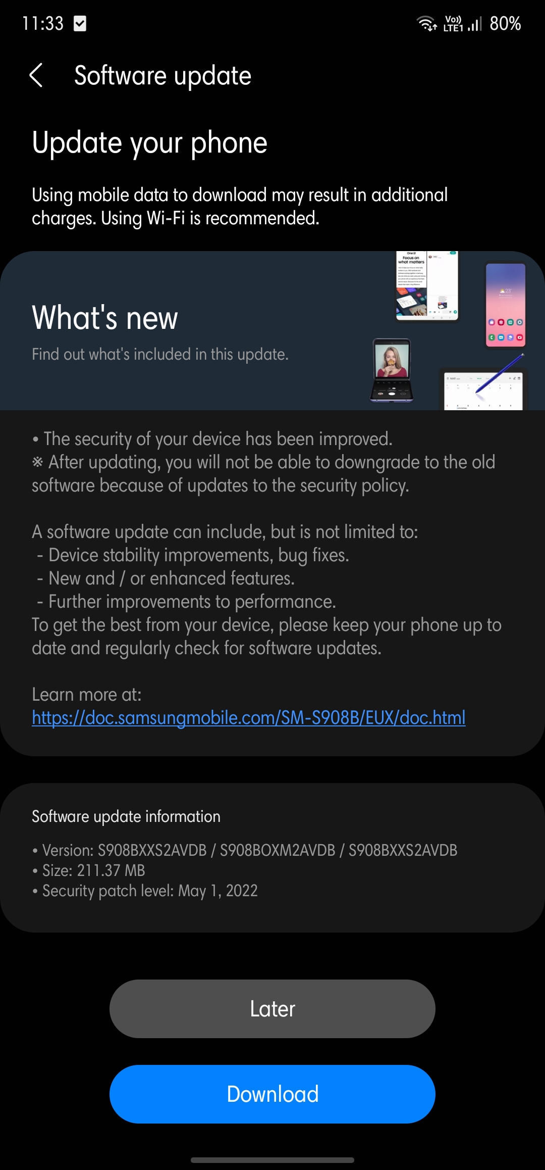 Link (za svaku sliku je navedeno s kojom kamerom je slikana u opisu, ako slučajno nije mogu pojasniti) Na S22U također, manji update. Izgleda samo security update + novi bootloader... |