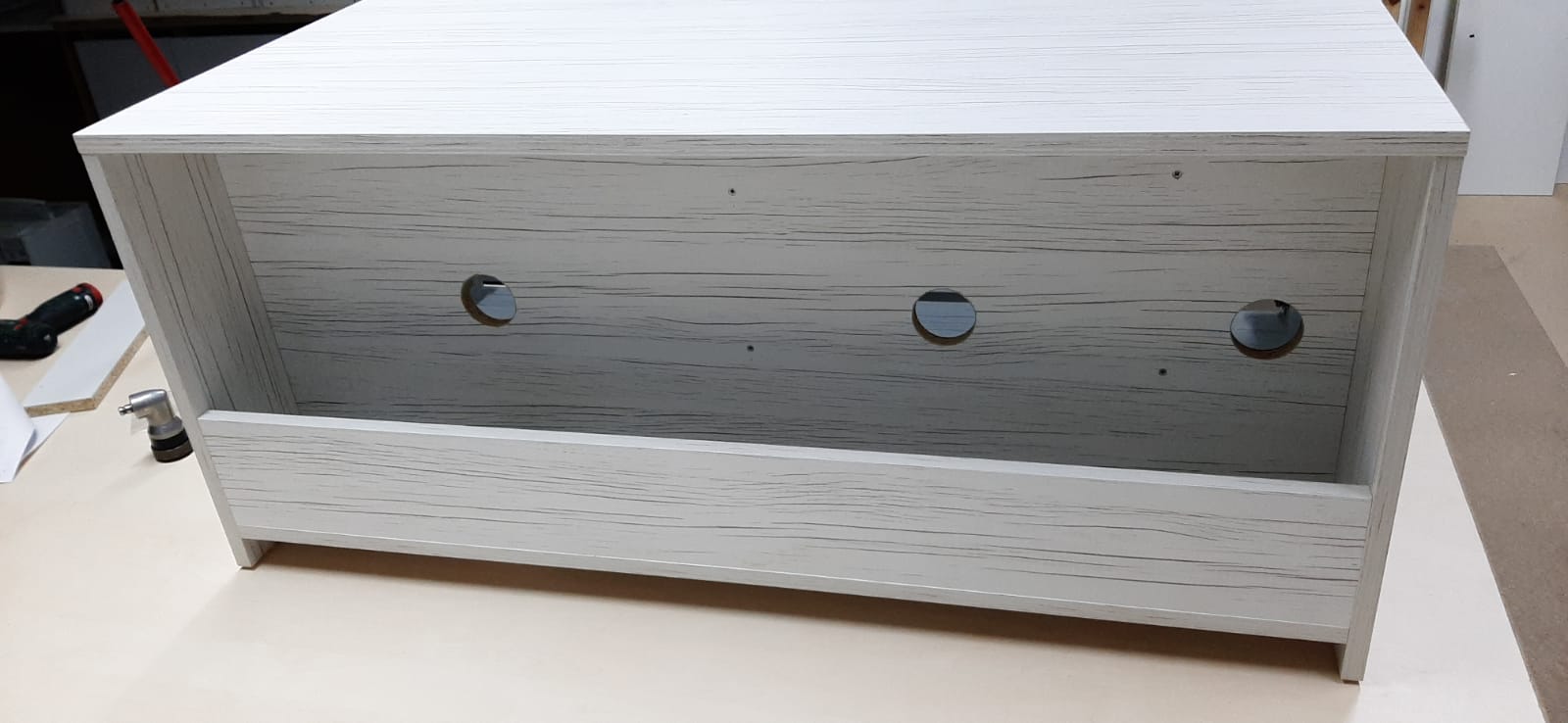 Ovaj šta mi ju je radio mi je rekao da rokam rupa kolko hoću iza po toj ploči ali da moram ostaviti bar 5cm od bočne stranice zbog nosivosti, inače bi se rasklimala. Ali i da idem rezati još to bi tek bila muka Isusova dok je sastavljena, poljepljena, teško bi tu pristupio sa pilom. |