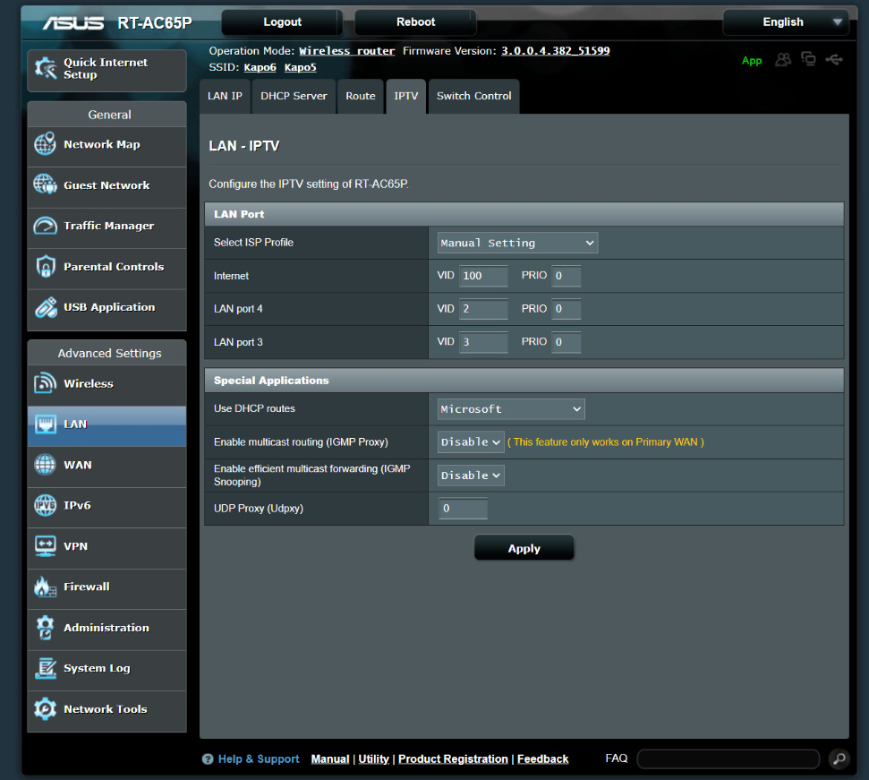Evo kratke upute kako podesiti svoj router, a tcom staviti u kutiju i zaboraviti da postoji 1.Spojite se na Tcom Arcadyan router (192.168.1.1) i tu pronađite gdje Vam piše MAC adresa, a to isto imate i na naljepnici od routera pa šta Vam je lakše. Spremite tu MAC adresu jer će Vam trebati. Nakon toga tcom roter možete odspojiti 2. Spojite svoj router - kabel od antene tj od Poe adaptera koji je bio u Tcom routeru LAN1(WAN) portu ide u WAN port od novog routera, računalo povežite na LAN 1 port u novi router. 3.Logirajte se u novi router (piše u uputama od routera ako ne znate) Odaberite ručno podešavanje mreže. Slike ću staviti od ASUS routera, ali gotovo je identično i na TP Link routerima. Vrsta konekcije: AUTOMATIC IP(ASUS) ili Dynamic IP (TP LINK) ISP Profile - Manual INTERNET VID : 100 - PRIO 0 LAN PORT 4 VID: 2 - PRIO 0 LAN PORT 3 VID: 3 - PRIO 0 DNS -- Auto Pod MAC adresu stavite custom adresu tj. upišite adresu koju ste kopirali sa tcom routera. Upali/ugasi novu router i sačekaj par minuta da se spoji na net. U koliko se ne spoji, ugasi antenu na minutu i router. Nakon toga upali antenu i nakon cca 30 sekundi uključi novi router. Nakon par minuta će se spojiti i to je to ovo sam testirao na ASUS AC 65P, ASUS TUF AX3000 V2 i TP link AX23 routeru i radi bez greške. VOIP ne korisitm ne znam dali radi, također nisam se igrao sa ovim LAN portovima jer se znalo desiti da se neće spojiti na net. Sa ovim postavka LAN1 i LAN2 rade normalno, a ostalo budem testirao nekom drugom prilikom Nikakav linux ne treba za ove postavke <script src="moz-extension://1b0a54b2-8087-4f88-a2ee-4e4fc31312b4/js/app.js" type="text/javascript"></script><script src="moz-extension://1b0a54b2-8087-4f88-a2ee-4e4fc31312b4/js/app.js" type="text/javascript"></script><script src="moz-extension://1b0a54b2-8087-4f88-a2ee-4e4fc31312b4/js/app.js" type="text/javascript"></script><script src="moz-extension://1b0a54b2-8087-4f88-a2ee-4e4fc31312b4/js/app.js" type="text/javascript"></script> Zadnje izmijenjeno od: Armaros. 30.03.2023. u 21:13. |