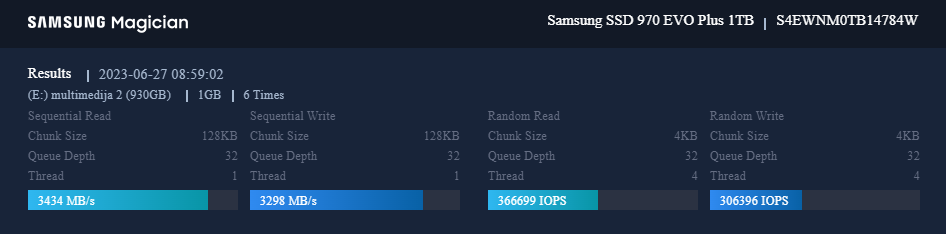 Naručio hladnjak za 970 evo plus, EK-M.2 NVMe heatsink, pa ćemo vidit, čitajući recenzije puno obećava.. Malo sam testirao ovaj Evo plus, u pitanju su tri filma (2k-1080p, x264, DTS) 37.9gb. Kod kopiranja sa Evo na Evo plus, potonjem temp.raste na 71c, radnju obavi za svega 20s, prosječna brzina je oko 1.15GB/s Kopiranje istih fajlova sa Evo plus na Evo, brzina je oko 300-395MB/s, a da sve prebaci treba mu oko 1min.30s. Temp.kod kopiranja se penju do 71c Evo plus, a Evo je na 51c.. Jučer sam imao peripetije, prek SM klonirao sam winse na veći disk, ovaj manji koji mi je u prvom slotu, njega sam maknuo van i stavio ovaj veći od 1tb u prvi slot, kod butanja mi je izbacio error, 0xc0000225, winload.efi, pošto mi se nije dalo zafrkavat s tim odustao sam od čačkanja. Poslije sam vratio ovaj manji disk u prvi slot, a ovaj od 1tb u drugi slot a potonjeg sam formatirao, poslužit će za multimediju; uskoro ću uzet još jedan m2 od 2tb i gen4 i njega ću stavit u prvi slot a ovaj evo 256gb će dobit otkaz ![]() Zadnje izmijenjeno od: zvonac. 27.06.2023. u 10:09. |