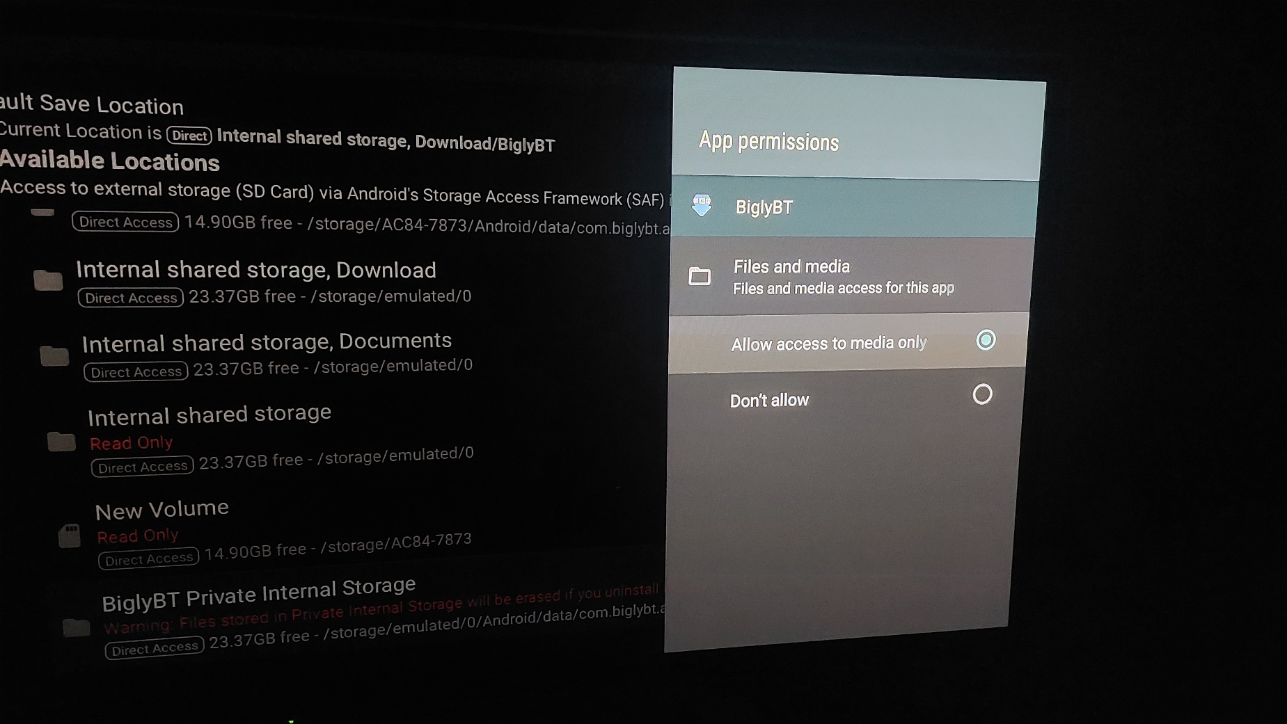 Instalirao preko fdroida ista stvar nema direct acessa na usb. Bt moze preko sicired foldera spremat na usb disk, a primitive ftp nemoze uopce na eksterni disk. Nemam niti opciju da enejblam file access samo medi access