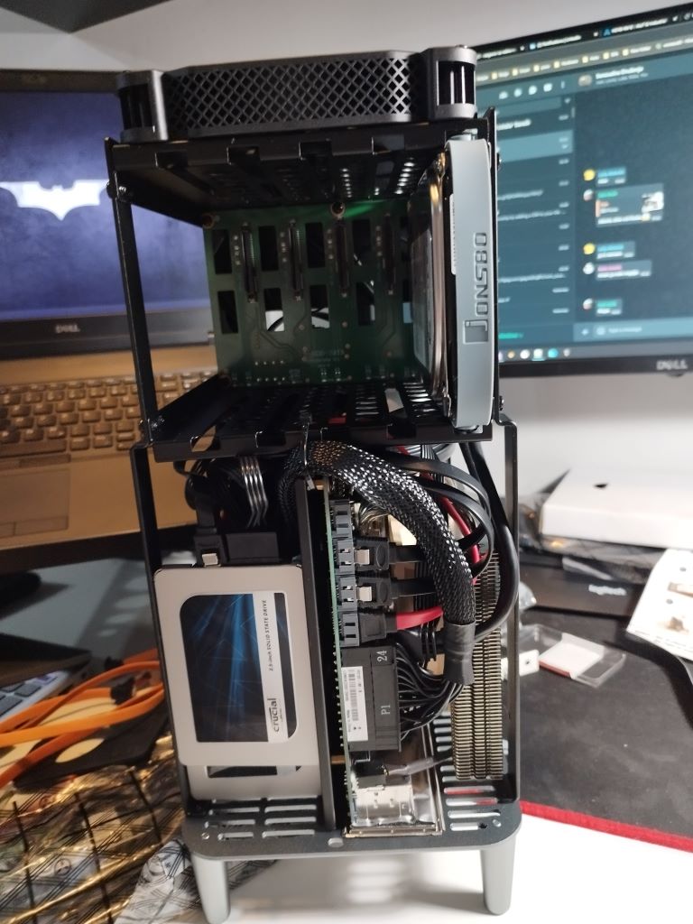 2x2TB SSD - primarno iSCSI za lab i tu spavaju APP-ovi 2x2TB HDD - smeće svakakvo 4x4TB HDD - backup laptopa + multimedia Pa dok sa svakoga vučem ili udaram sa više strana po svima pomalo - mogu 9G navuć ![]() Nego uskoro se dodaje nova kantica koja bu preuzela primat za home server, a postojeći se transformira u isključivo lab dužnost. U dolasku je: Jonsbo N1 + be quiet psu 5x 8TB Seagate Exos Doma već čeka: i3 8100 + Asus H310I-IM-B + 2x16 RAM-a + Noctua L12 Moram videt kak bum SSD-ove koje imam doma presložil i moram negdje nać još jednu 10G karticu, a moguće da bum za prvu ruku koristil i m.2 na intel i225 imam neku kemiju koja je s Alije došla, a niti nemam pojma jel radi ![]() Uz malo sreće do petka su kištra i PSU ovde pa se imam sočime preko vikenda igrati ![]() Citiraj: