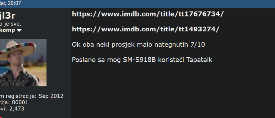 https://www.imdb.com/title/tt17676734/ https://www.imdb.com/title/tt1493274/ Ok oba neki prosjek malo nategnutih 7/10 Poslano sa mog SM-S918B koristeći Tapatalk |