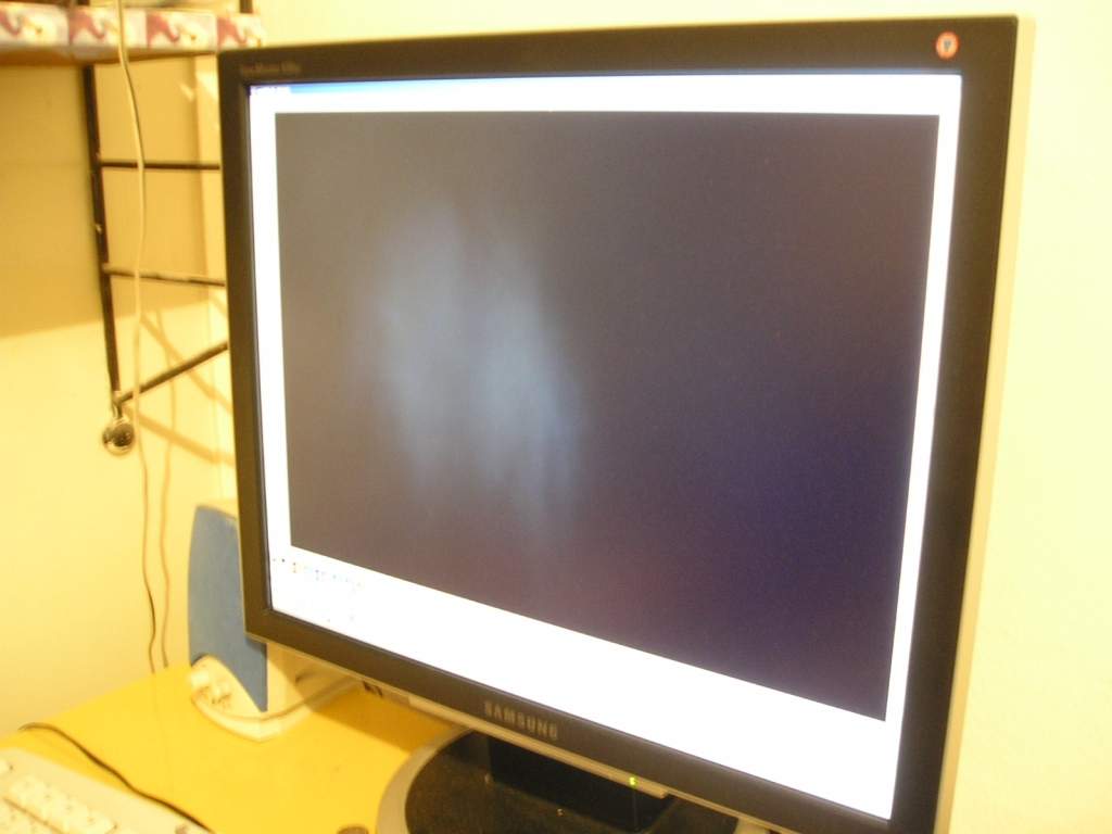 -ako neznaš što je to, onda bar nemoj lupat gluposti -monitor treba hitno reklamirati jer je otišlo pozadinsko osvjetljenje, i ili upravljačka elektronika monitora, a pošto imaš tri godine garanciju, ništa ne brini -to se ne smije vidit, i amen |