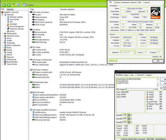 Dokle sam do****o sa dizanjem FSB-a? Za sada jos nista, mal me strah jer imam box verziju cooler-a. Uglavnom ja sto se tice ovoga sam samo FSB povecao, i ostalo, nisam dirao napon, i memoriju sam spustio ispod 400Mhz.